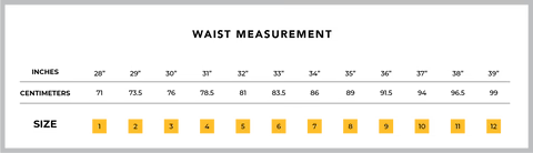 While wearing clothing that you would typically run in; measure around your waistline where you'd want the top of the band to sit, which is typically at the navel, making sure to keep your abdomen relaxed and not pull the tape measure tightly. A nice, easy wrap will ensure the correct fit. If you are between sizes, size up.