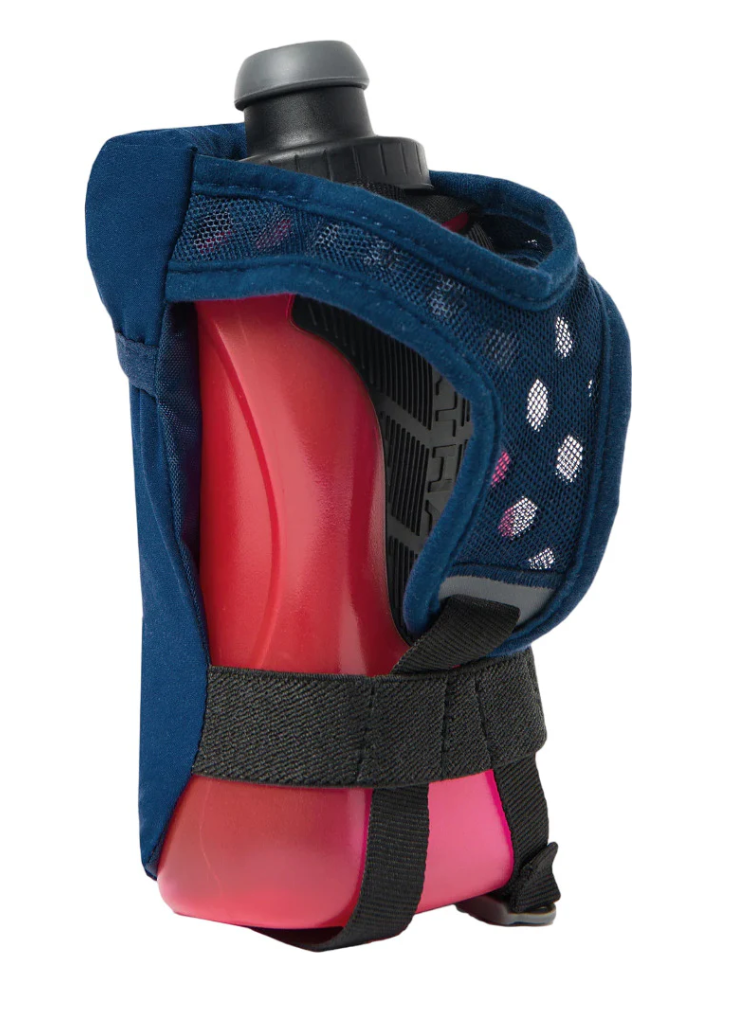 The QuickSqueeze Plus handheld bottles are 12oz and allow the wearer to hydrate with ease and comfort and offer storage for phone and valuables.