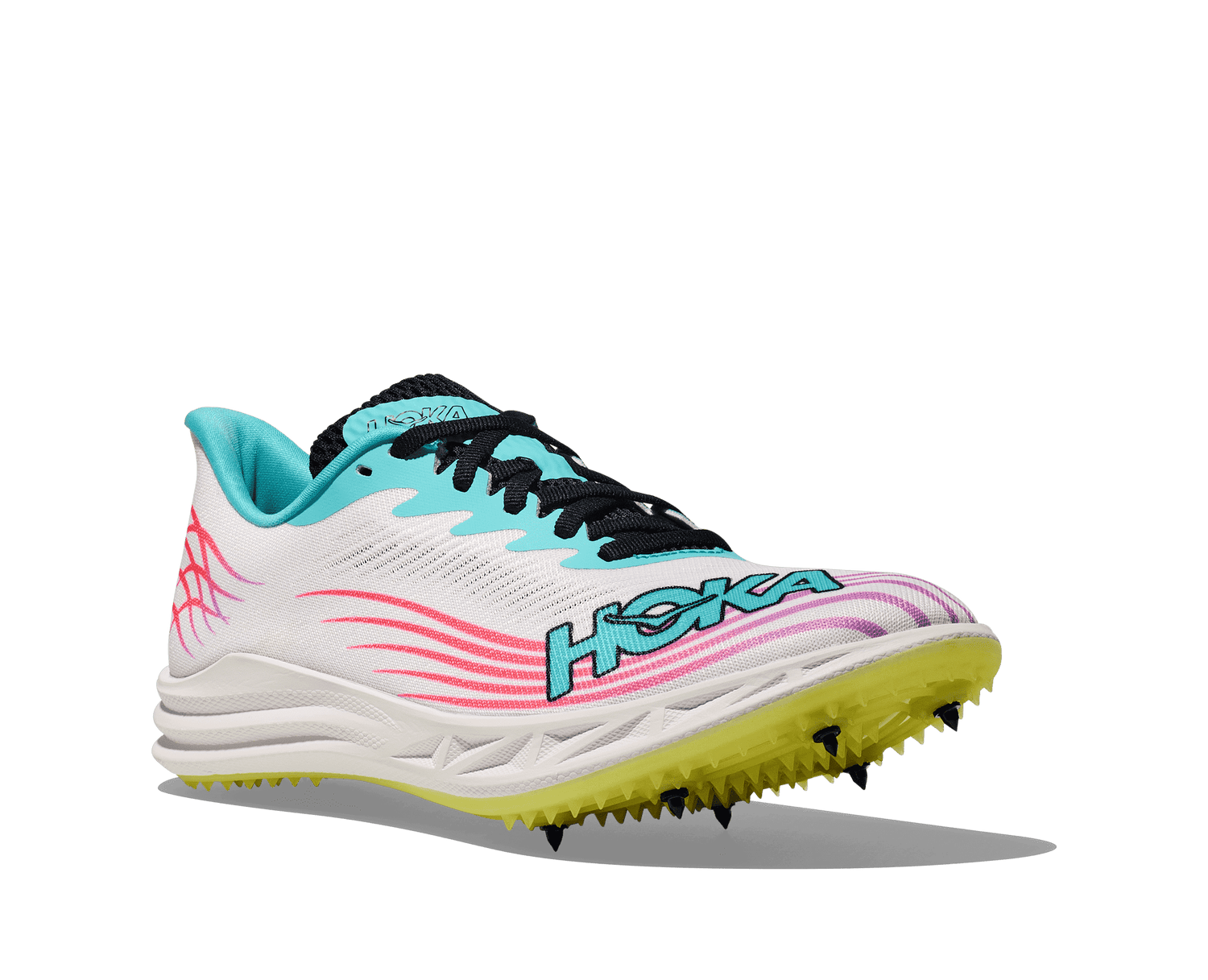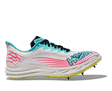 Built for speed. Cushioned for comfort. This is the Hoka Crescendo track spike. The Crescendo is an incredibly comfortable, beginner friendly track spike engineered with more cushioning and midsole foam than Hoka's elite spikes and the same 6-pin spike plate and bouncy stack height as its predecessor but with a bold new race-ready single-layer mesh upper. This middle-distance track spike is a great all around, multipurpose spike for the high-school athlete.